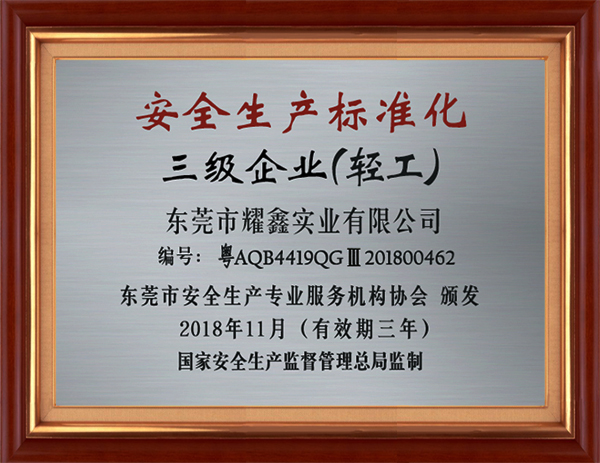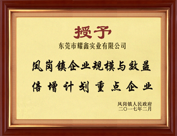 授予凤岗镇企业规模与效益倍增计划重点企业、安全生产标准化三级企业(轻工)