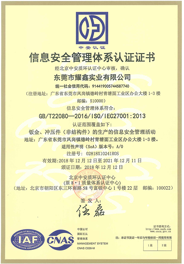 从2018年初开始,为了适应市场及客户要求,强化公司内部管理,公司决定对上述五大体系进行认证,已通过的有汽车行业管理体系、质量和环境管理体系、信息安全管理体系,计划2019再通过ISO45001:2018原OHSAS18001职业健康安全管理体系认证并取得资格证书。
